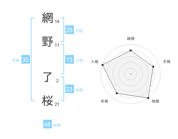 占い結果は姓名判断である以上、良い場合も悪い場合もありますが、決してお名前を誹謗中傷するものでなく、画数の自動計算によって得られたものです。また、本サイトの検索によって得られた鑑定結果で、第三者を誹謗中傷したり名誉を棄損するような行為を禁じます。