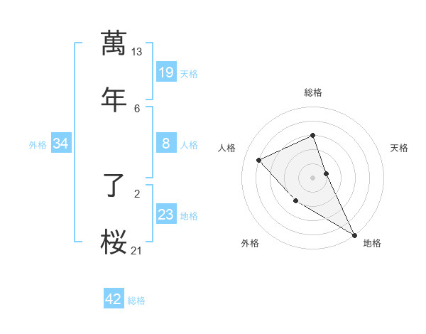 萬年 了桜さんの総格は42画の3点!