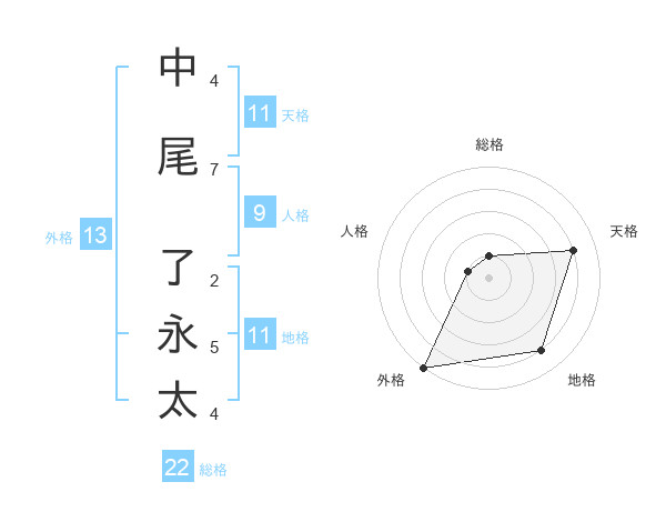 中尾 了永太さんの総格は22画の1点!