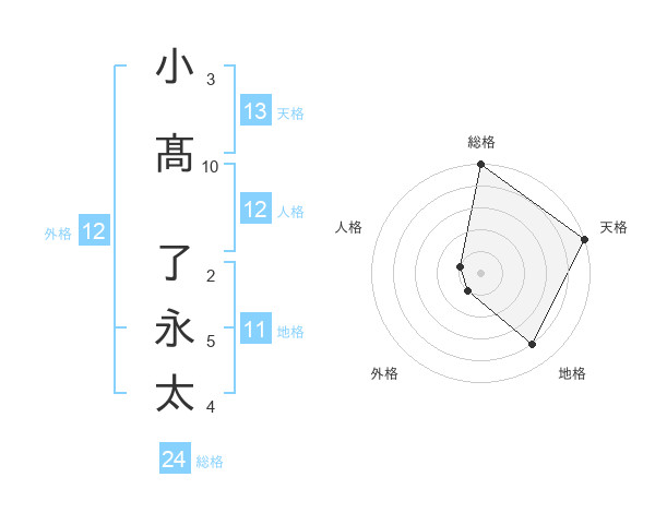 小髙 了永太さんを姓名の画数から五運を鑑定