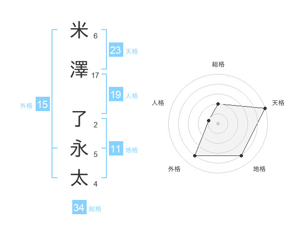 米澤 了永太さんの総格は34画の2点