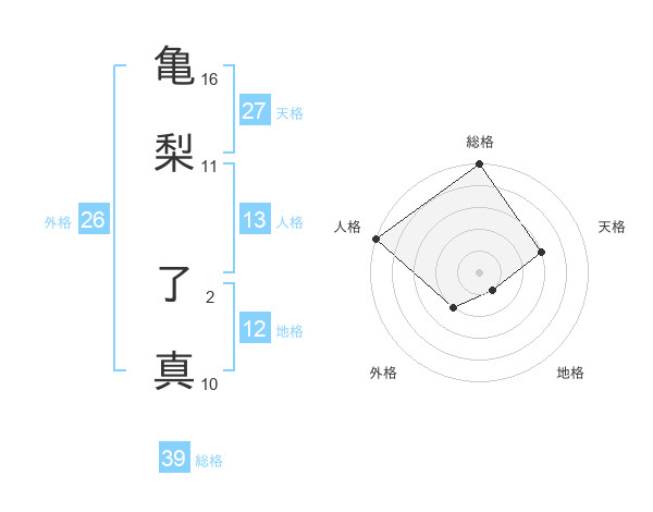亀梨 了真さんを姓名の画数から五運を鑑定