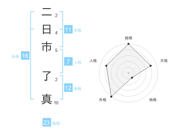 二日市 了真さんの総格は23画の5点!