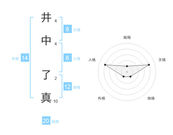 井中 了真さんの総格は20画の1点!
