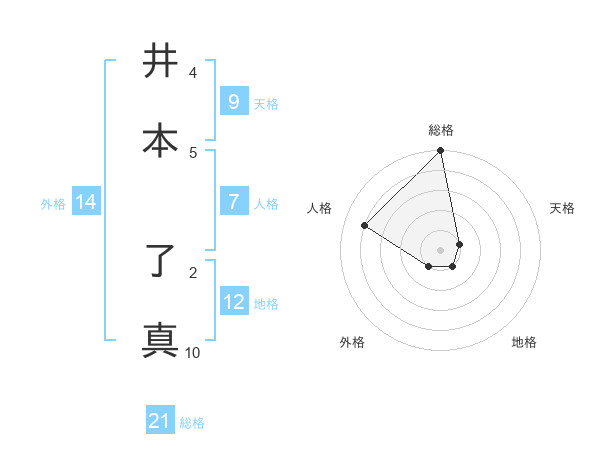 井本 了真さんの総格は21画の5点!