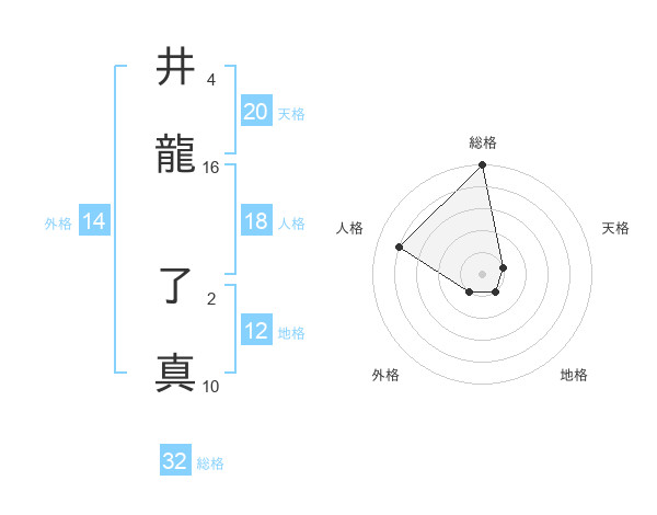 井龍 了真さんの総格は32画の5点!