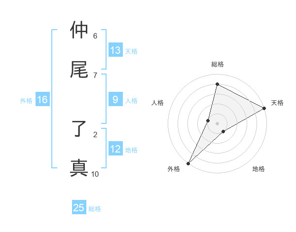 仲尾 了真さんの総格は25画の4点!