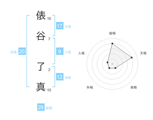 俵谷 了真さんを姓名の画数から五運を鑑定