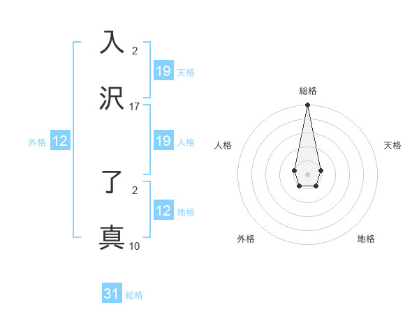 入沢 了真さんの総格は31画の5点!