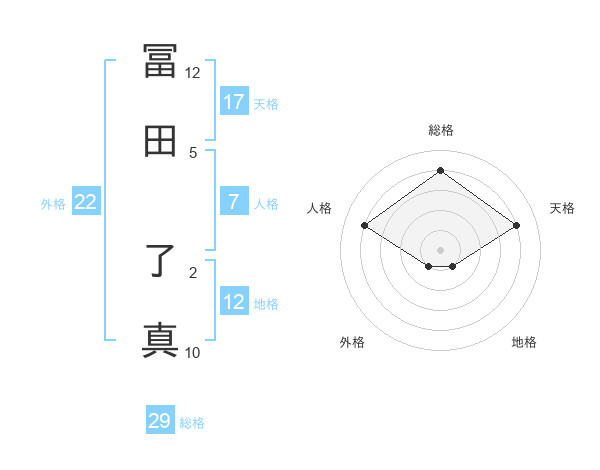 冨田 了真さんの総格は29画の4点!