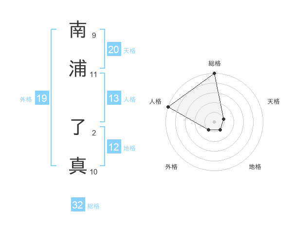 南浦 了真さんの総格は32画の5点!