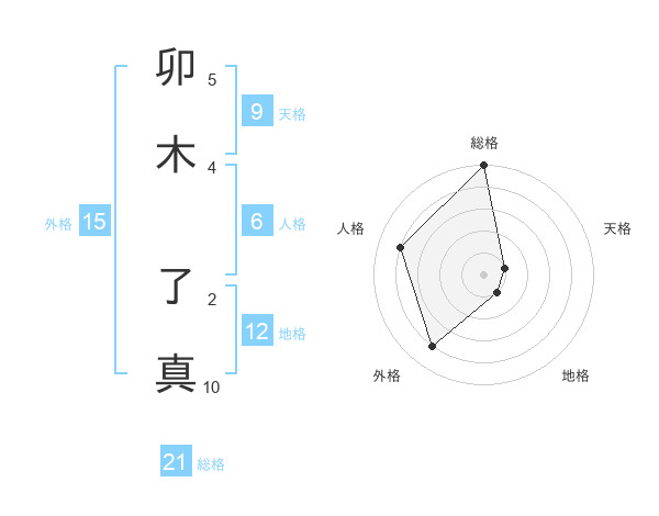 卯木 了真さんの総格は21画の5点!