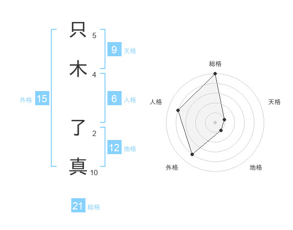 只木 了真さんの総格は21画の5点!