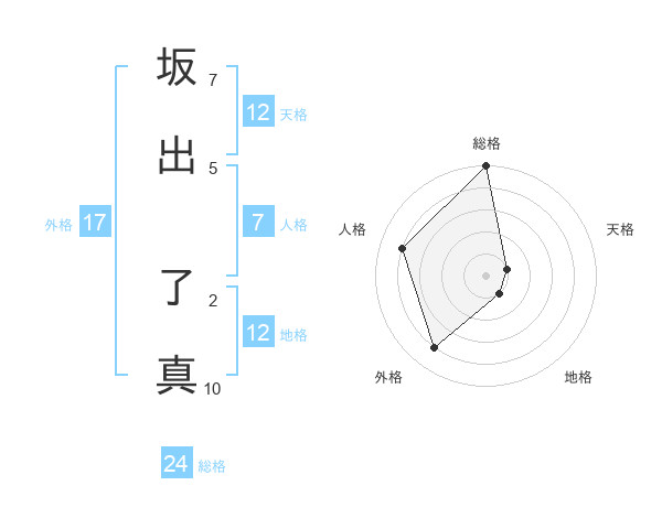 坂出 了真さんの地格は12画の1点!