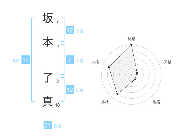 坂本 了真さんの天格は12画の1点!