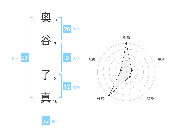 奥谷 了真さんの総格は32画の5点!