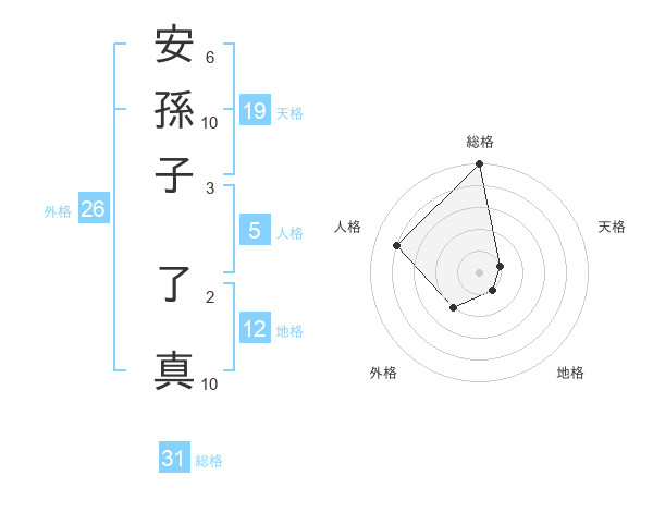 安孫子 了真さんの総格は31画の5点!