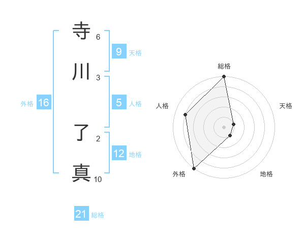寺川 了真さんの外格は16画の5点!