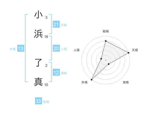 小浜 了真さんの天格は21画の5点!