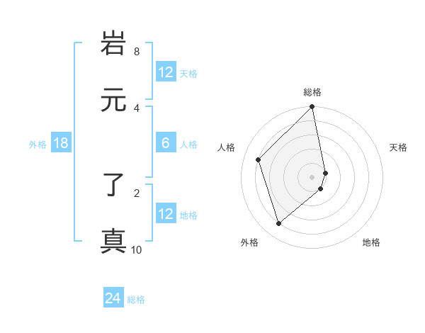 岩元 了真さんの総格は24画の5点!