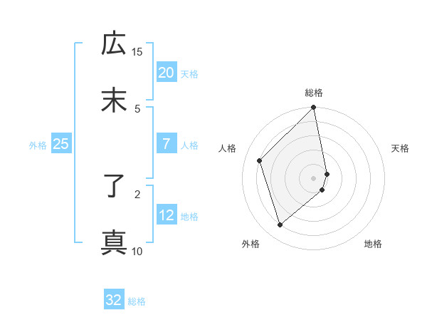 広末 了真さんの総格は32画の5点!