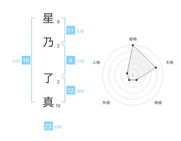 星乃 了真さんの総格は23画の5点!