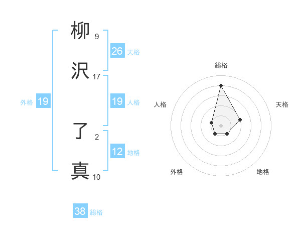 柳沢 了真さんの総格は38画の4点!