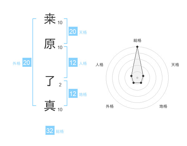 桒原 了真さんの総格は32画の5点!