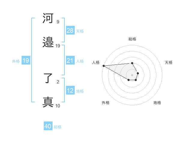 河邉 了真さんの総格は40画の2点!