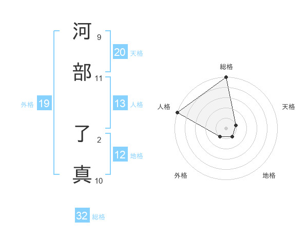 河部 了真さんの総格は32画の5点!
