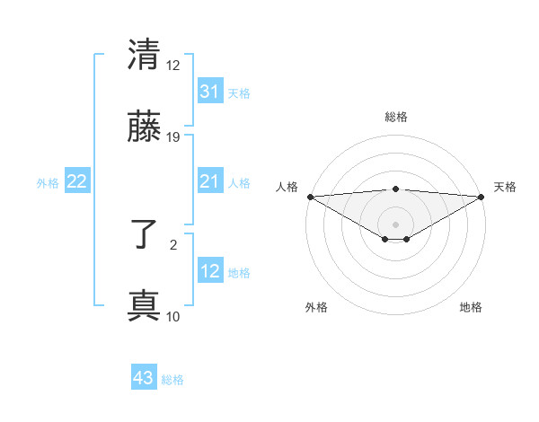 清藤 了真さんの天格は31画の5点!