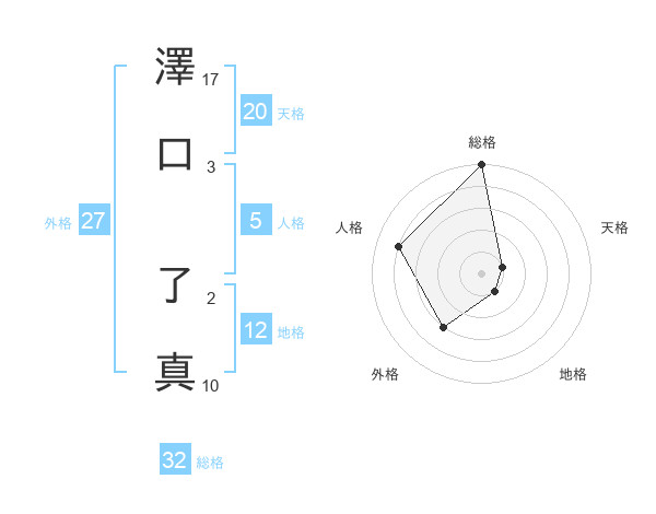 澤口 了真さんの総格は32画の5点!