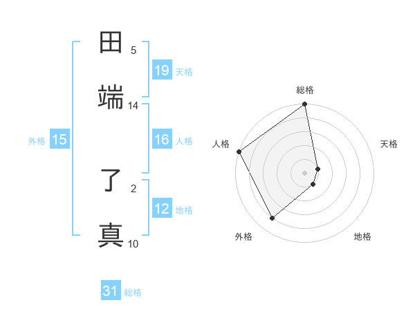 田端 了真さんの総格は31画の5点!