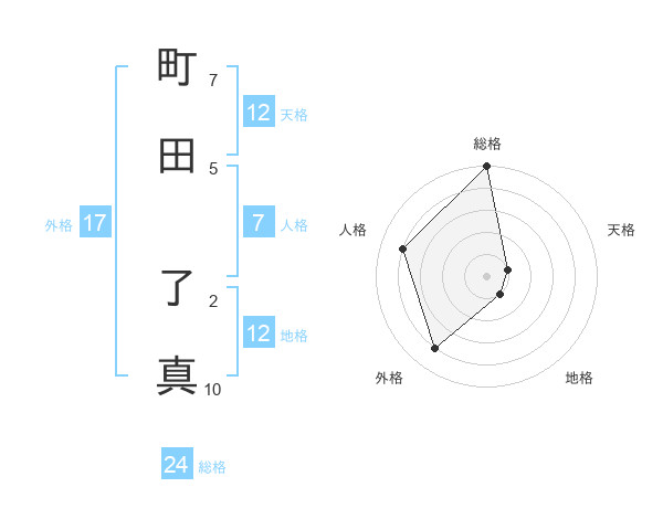 町田 了真さんの総格は24画の5点!