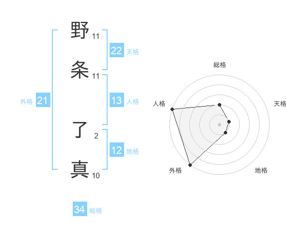 野条 了真さんの外格は21画の5点!