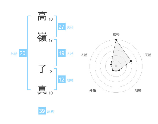 高嶺 了真さんの総格は39画の5点!