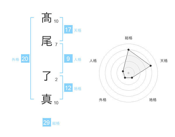 髙尾 了真さんの総格は29画の4点!