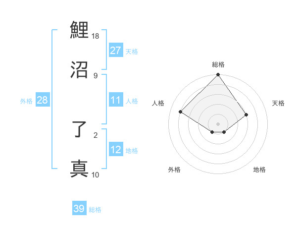 鯉沼 了真さんの総格は39画の5点!
