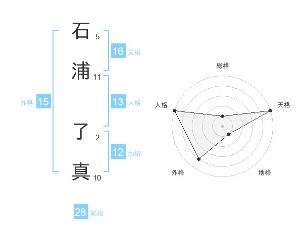 石浦 了真さんの総格は28画の1点!