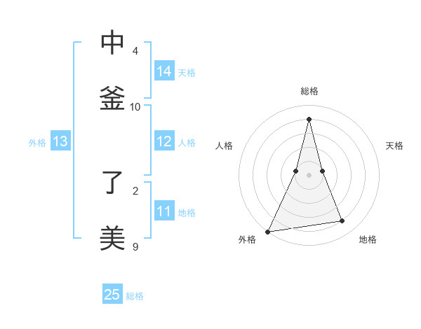 中釜 了美さんの総格は25画の4点!