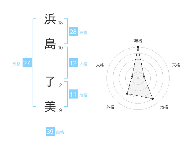 浜島 了美さんの総格は39画の5点!