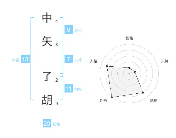中矢 了胡さんを姓名の画数から五運を鑑定