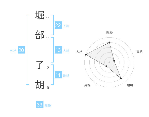 堀部 了胡さんを姓名の画数から五運を鑑定