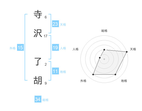 寺沢 了胡さんを姓名の画数から五運を鑑定