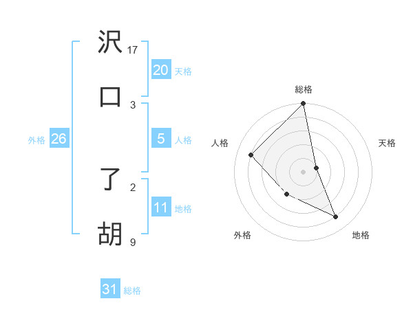 沢口 了胡さんの天格は20画の1点!