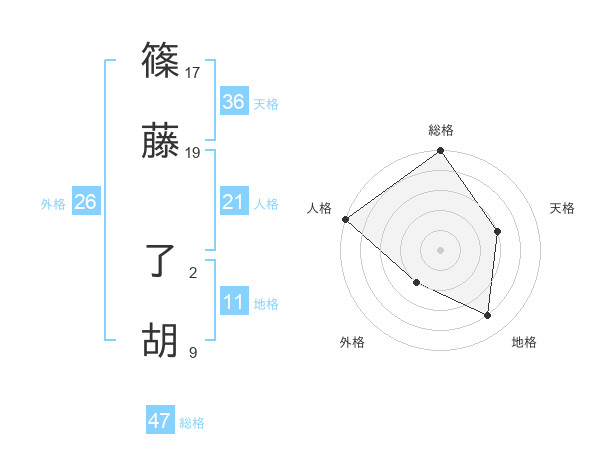篠藤 了胡さんの外格は26画の2点!