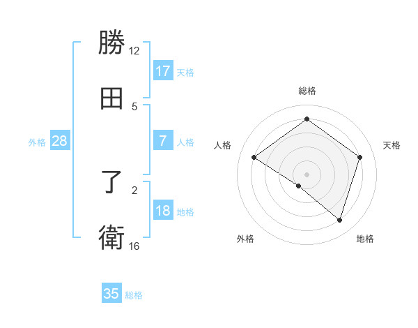 勝田 了衛さんを姓名の画数から五運を鑑定