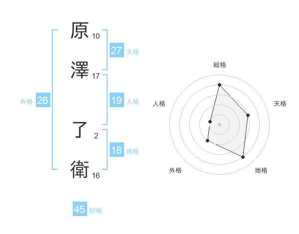 原澤 了衛さんの総格は45画の4点!