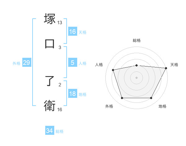 塚口 了衛さんの天格は16画の5点!