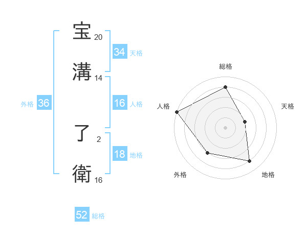 宝溝 了衛さんの総格は52画の4点!